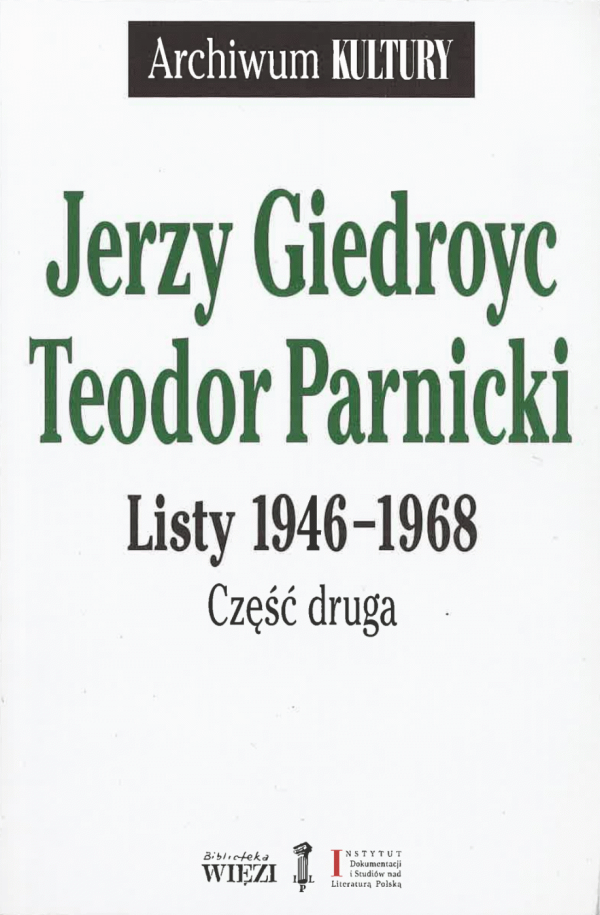 Listy 1946-1968. Cz. 2 / Jerzy Giedroyc, Teodor Parnicki ; oprac. wstępem i przypisami opatrzył Andrzej Dobrowolski ; Instytut Dokumentacji i Studiów nad Literaturą Polską. Oddział Muzeum Literatury im. Adama Mickiewicza, Association Institut Littéraire "Kultura".