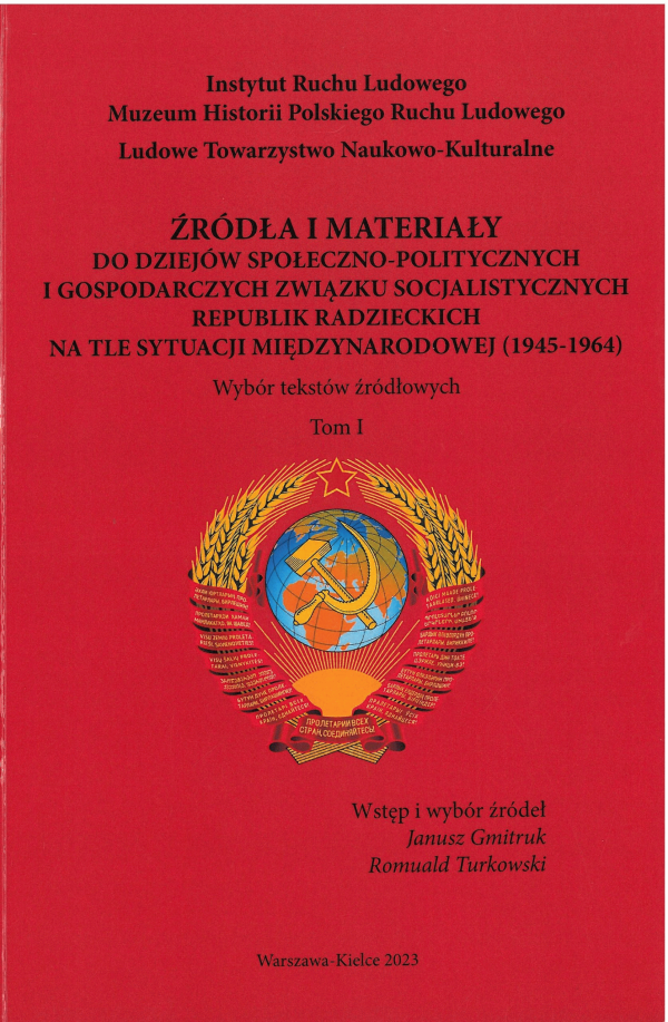 Źródła i materiały do dziejów społeczno-politycznych i gospodarczych Związku Socjalistycznych Republik Radzieckich na tle sytuacji międzynarodowej (1945-1964) : wybór tekstów źródłowych. T. 1 / wstęp i wybór źródeł: Janusz Gmitruk, Romuald Turkowski ; Instytut Ruchu Ludowego. Muzeum Historii Polskiego Ruchu Ludowego w Warszawie, Ludowe Towarzystwo Naukowo-Kulturalne.