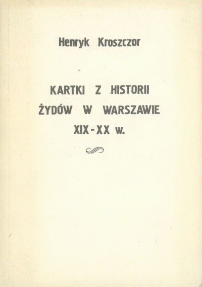 Kroszczor Henryk, . 1979. Kartki z historii Żydów w Warszawie XIX-XX w. Warszawa: Żydowski Instytut Historyczny w Polsce.